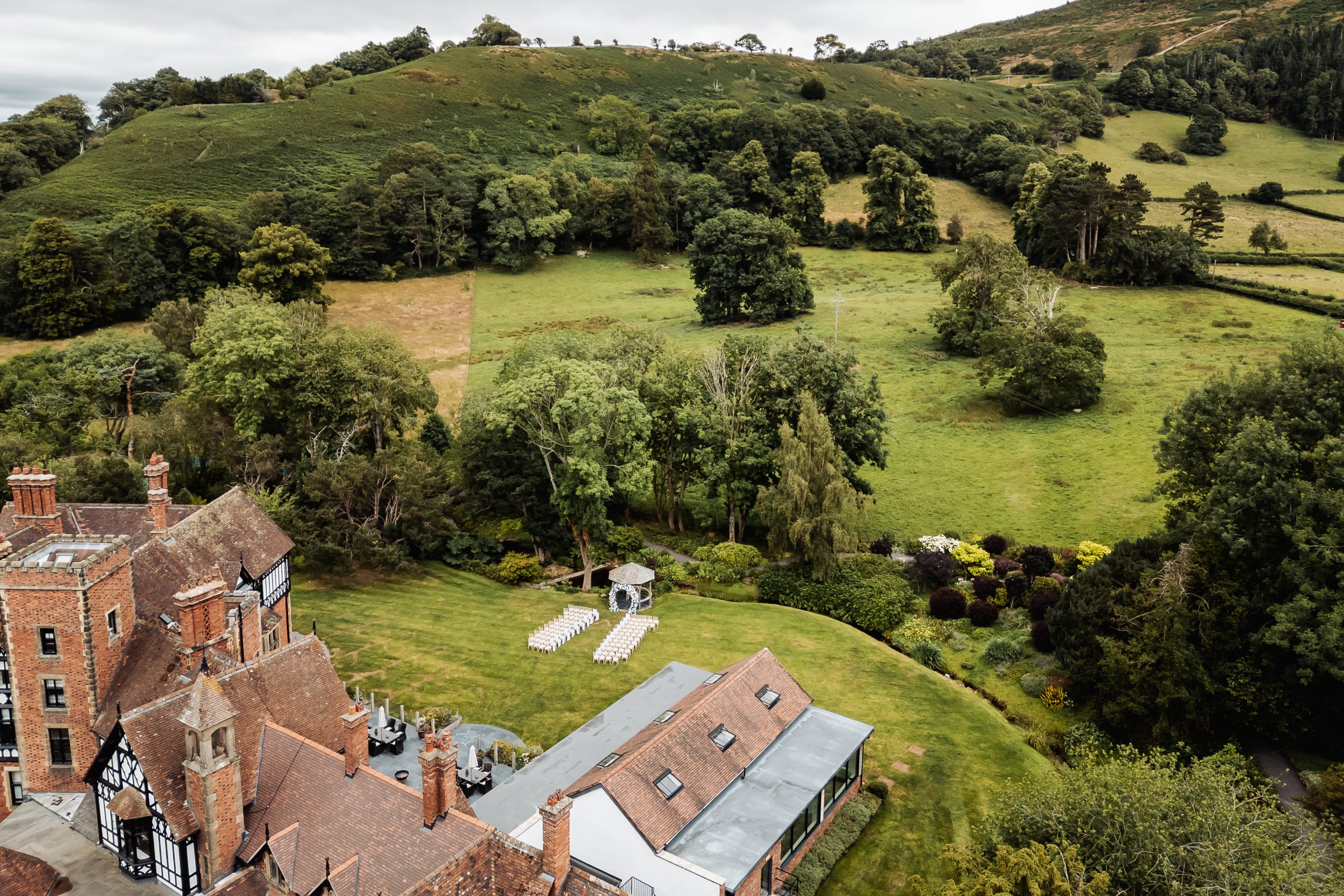 Fresh air, the sound of birds in the trees, the Berwyn Moutains as a backdrop and your guests gathered in the gardens as you say your vows. When the weather is just right, outdoor ceremonies can feel wonderfully relaxed and romantic.